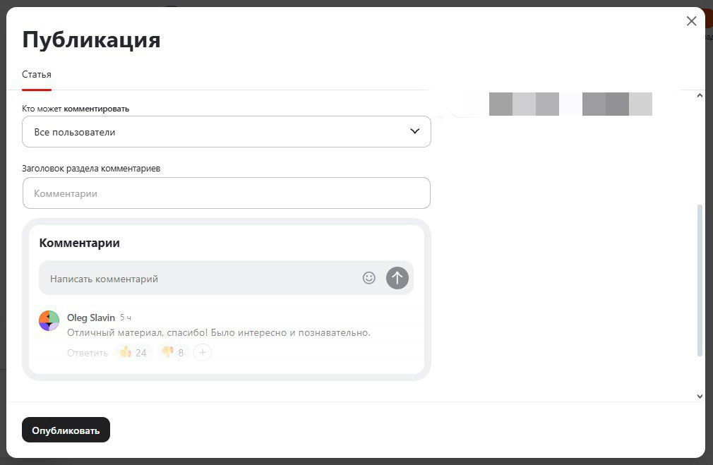 Любопытное нововведение заметил один из авторов Дзена. Он поделился в комментариях телеграм-канала @prodzen скриншотом обновлённого окна публикации статьи.