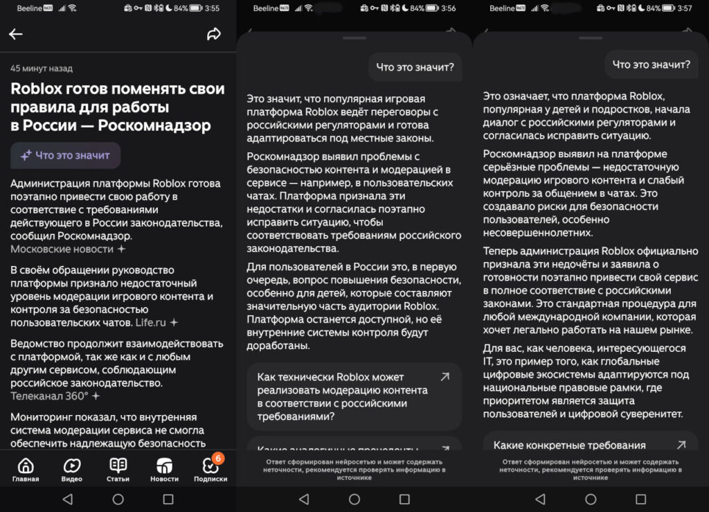 Любопытно, что ранее в Новостях в Дзене уже была похожа функция. Называлась она «Пересказ от нейросети» и была доступна только на ПК. Эту возможность убрали из Дзена сразу после публикации итогов года. При этом кнопка «Что это значит» доступна только в мобильном приложении.