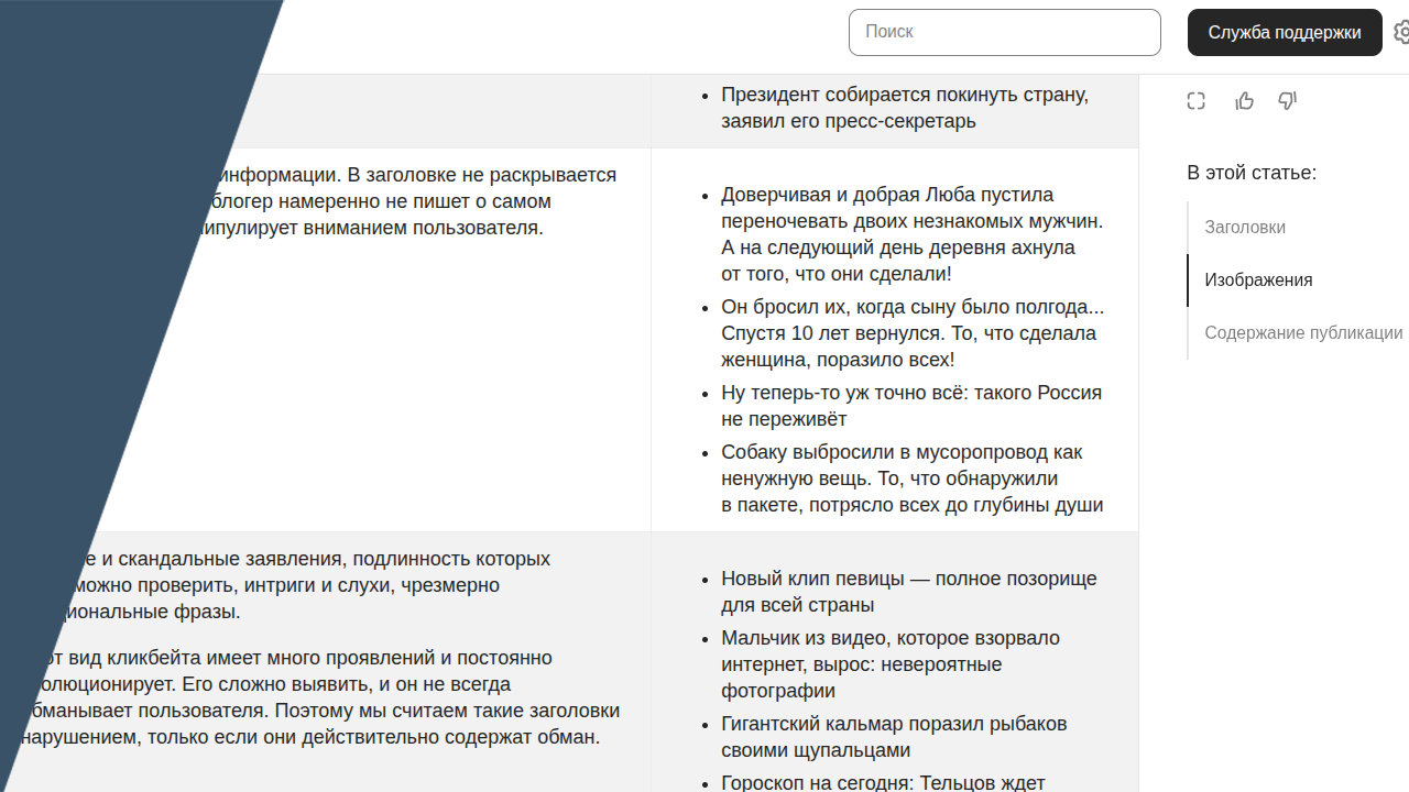 - Обновлены примеры кликбейтных заголовков, теперь они больше похожи на те, что встречаются в ленте.