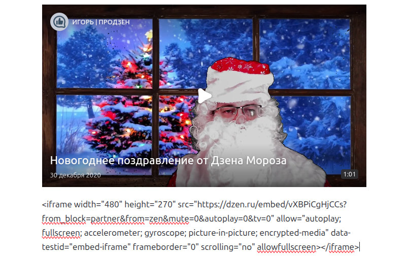 Тем не менее, передать видео можно. Для этого нужно взять исходный виджет и изменить там ссылку вида «dzen.ru/embed/…» на прямую ссылку на видео — «dzen.ru/video/watch/…» , Дзен её поймёт.