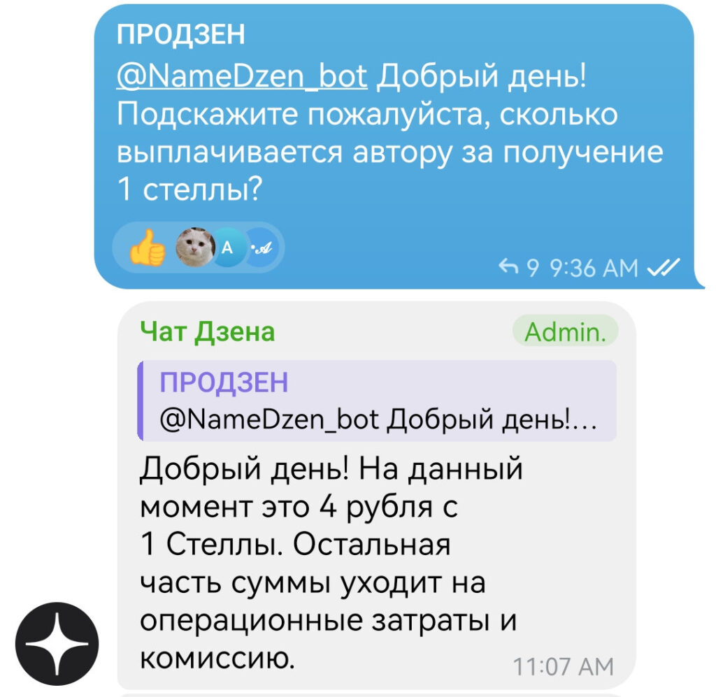 Судя по всему, в действительности списывается больше. У меня в статистике — 3 стеллы, за которые начислили 10,5 руб. вознаграждения. Т.е. «остальная часть суммы», причитающаяся Дзену, составила почти 70%.
